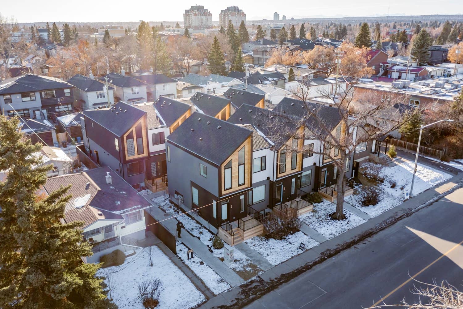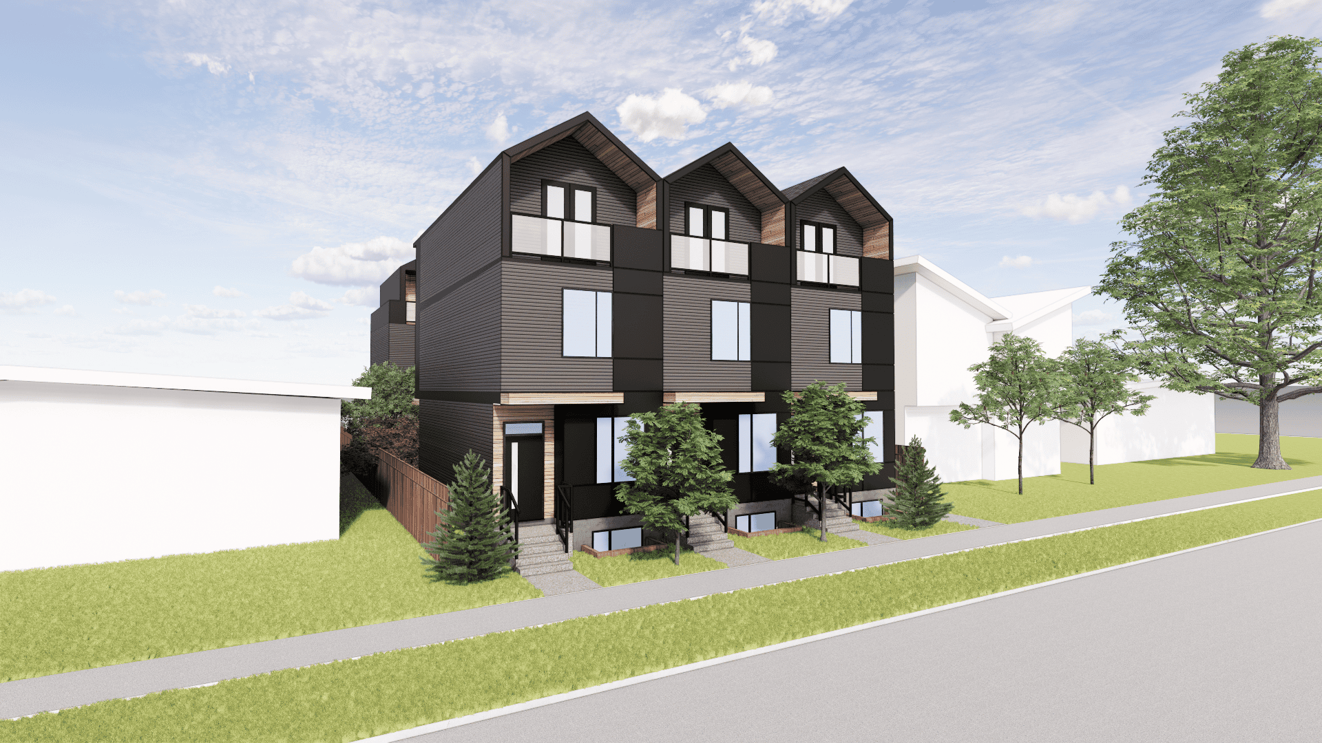 This 4+4 missing middle development is a thoughtfully designed project nestled in the heart of Highland Park. This project features 4 units and 4 secondary suites and aligns seamlessly with existing bylaw requirements, offering a modest yet noticeable increase to the density of the neighborhood. The architectural form and materials used in this project integrates into the existing context of the surrounding buildings while incorporating contemporary elements for a modern touch.