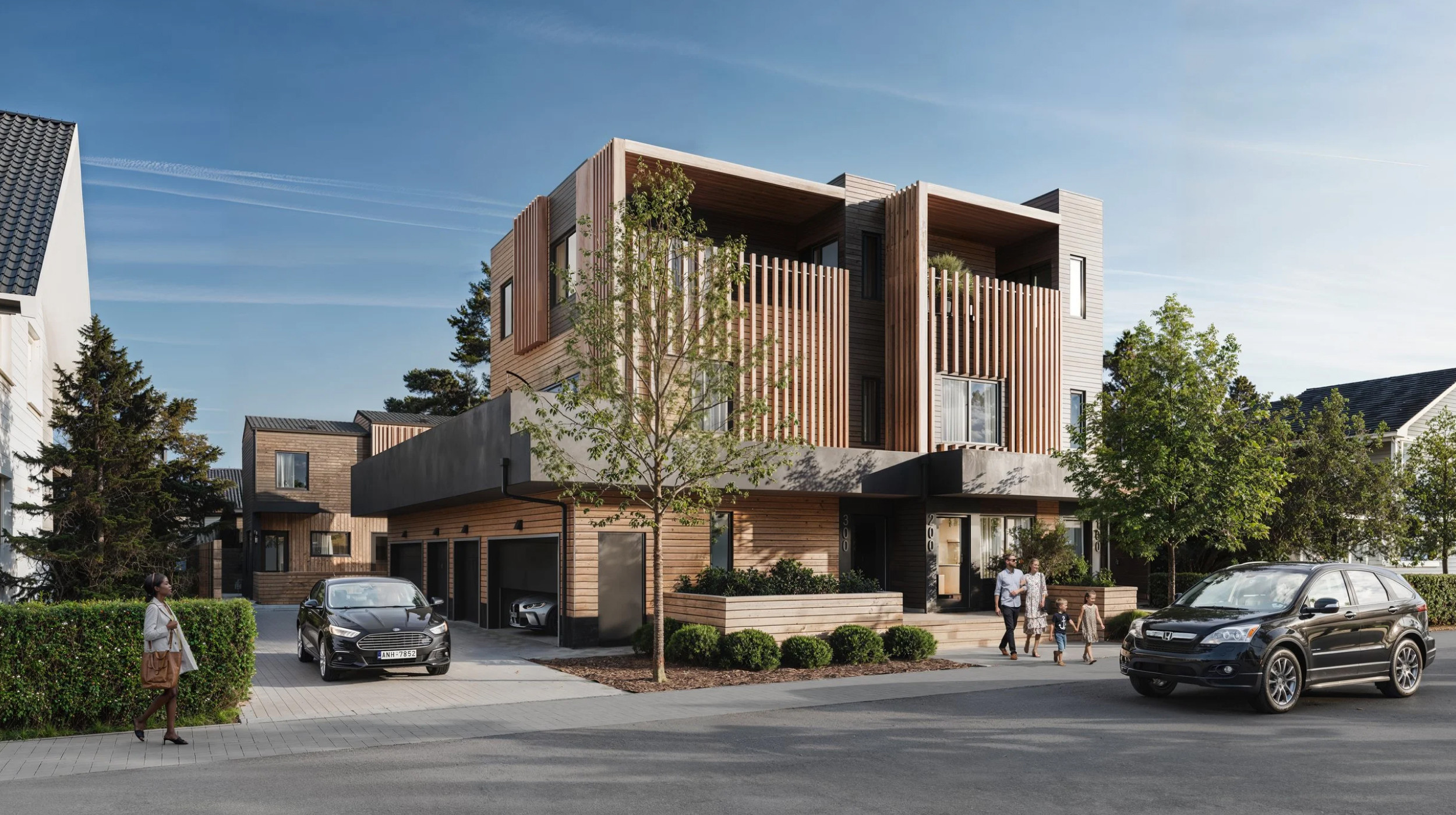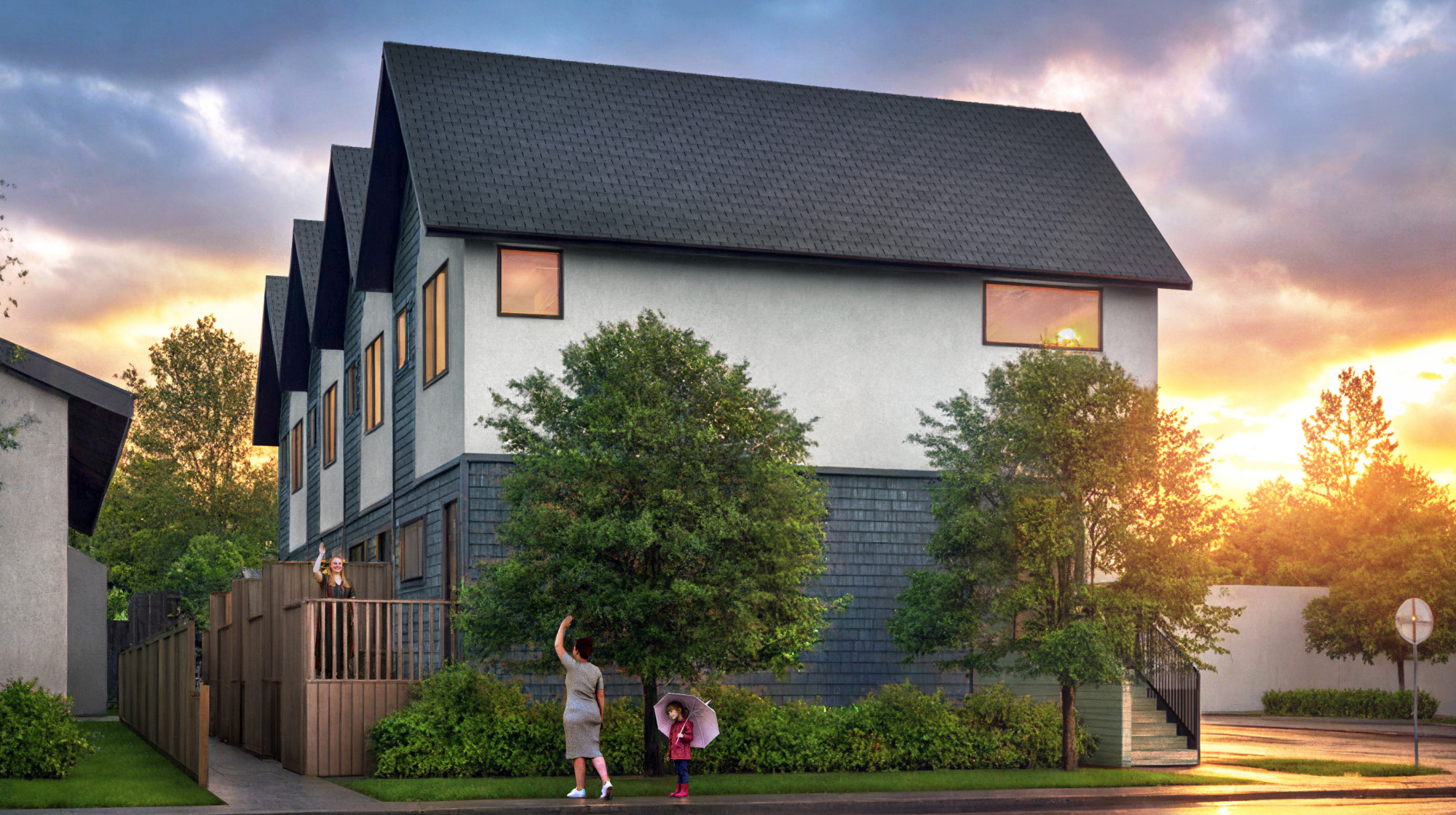 Street-facing entries create an engaging pedestrian experience, while expanded glazing in corner units maximizes natural light and enhances interior spaces. Each unit also has access to a private amenity space at the rear, allowing for space for residents to enjoy the outdoors.