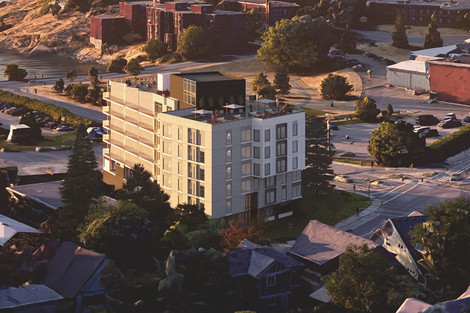 Constance House is designed to focus views to the harbor, providing generous gathering spaces for the community with a central courtyard at grade, and a spacious rooftop to view to rest of beautiful Esquimalt.