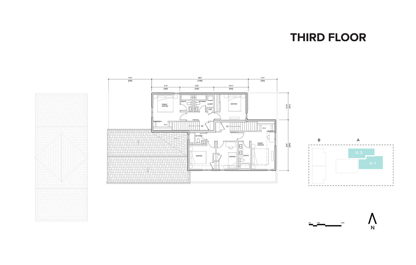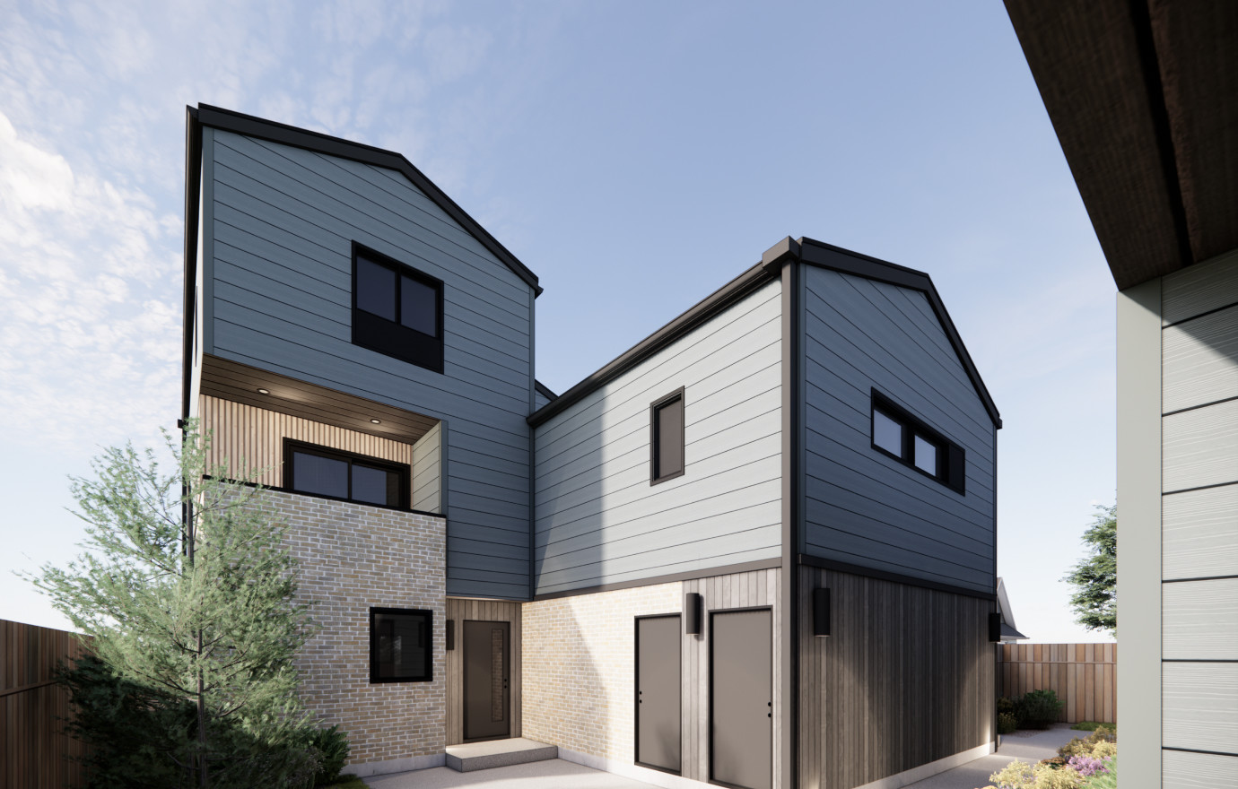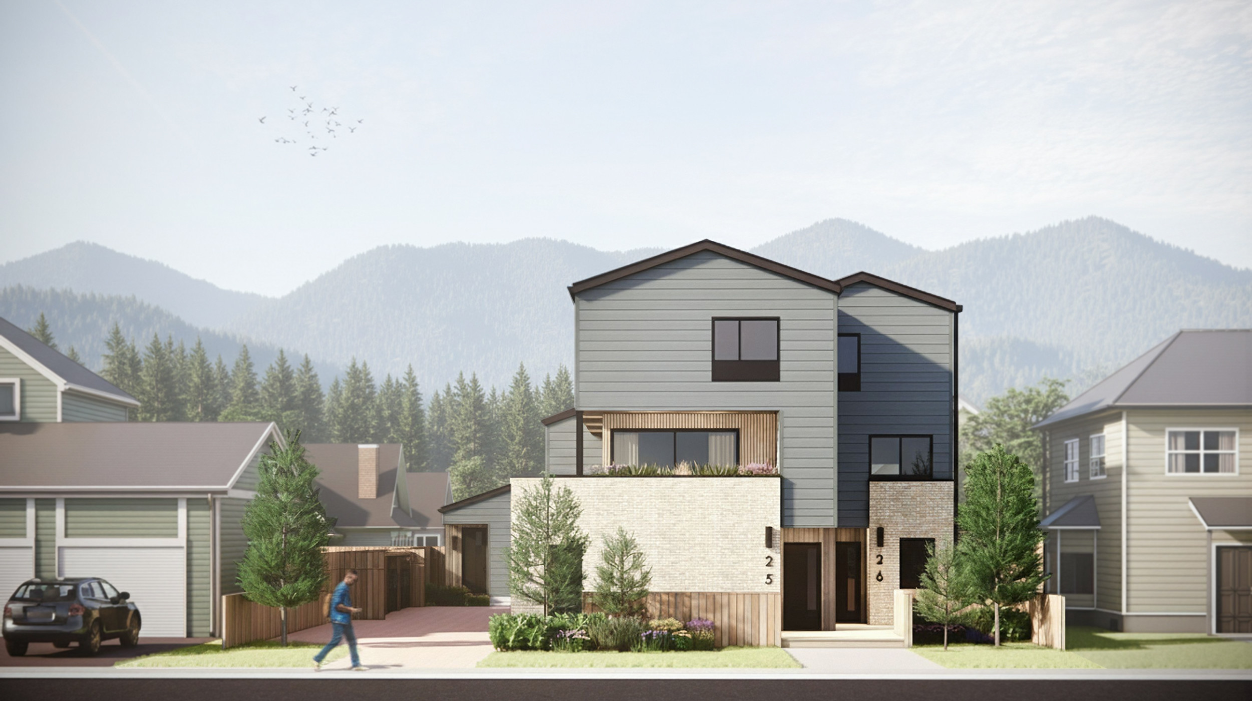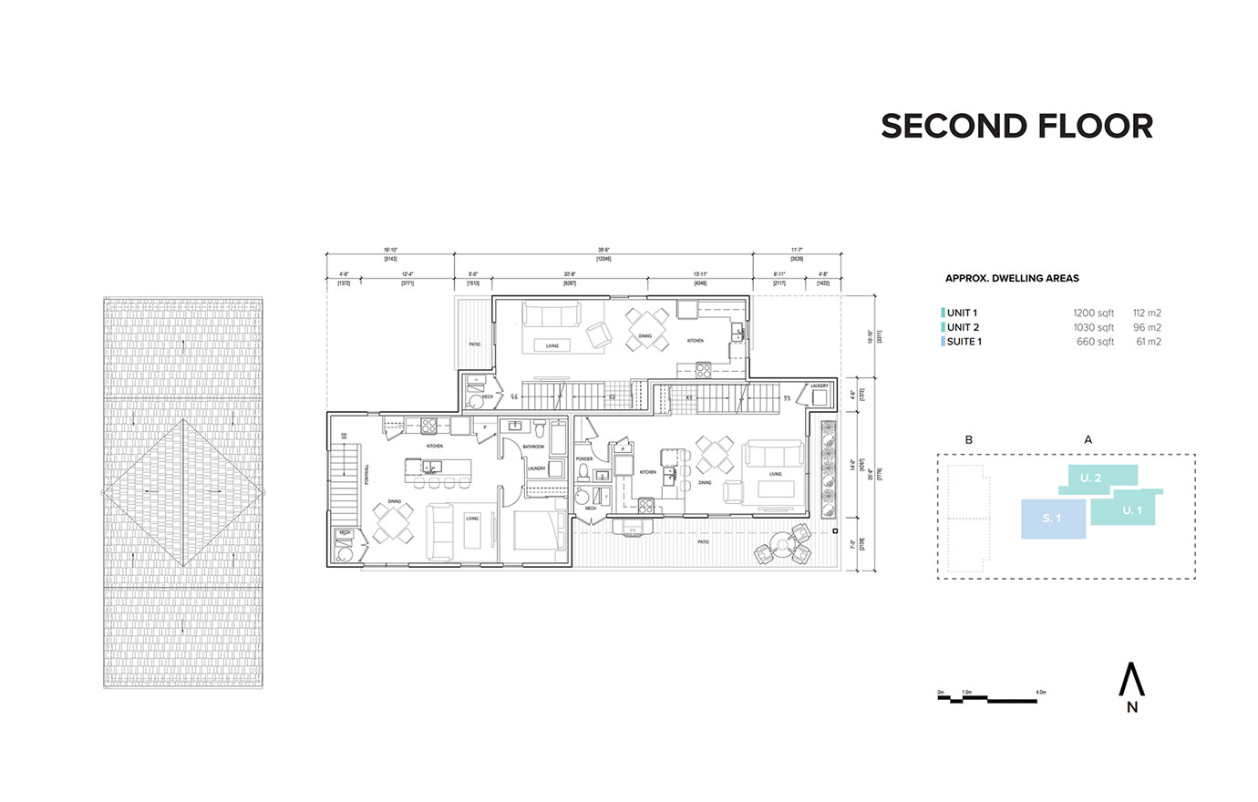 At first glance, Hideaway 6 appears to be either a single-family home or a duplex from the street. However, six dwellings have been carefully designed on an approximately 668m² midblock lot. Two Urban Infill Residential Units, with two Secondary Suites and two Garden Suites have been proposed, which aligns with RS-1, RS-1a, and RS-1c zoning. The building massing has been oriented so that vehicular access is at the front of the lot, via a permeable paved driveway. A unit mix of one 2-storey 3-bedroom unit, one 2-storey 2-bedroom unit, and four 1-bedroom suites provide ample choice for residents.