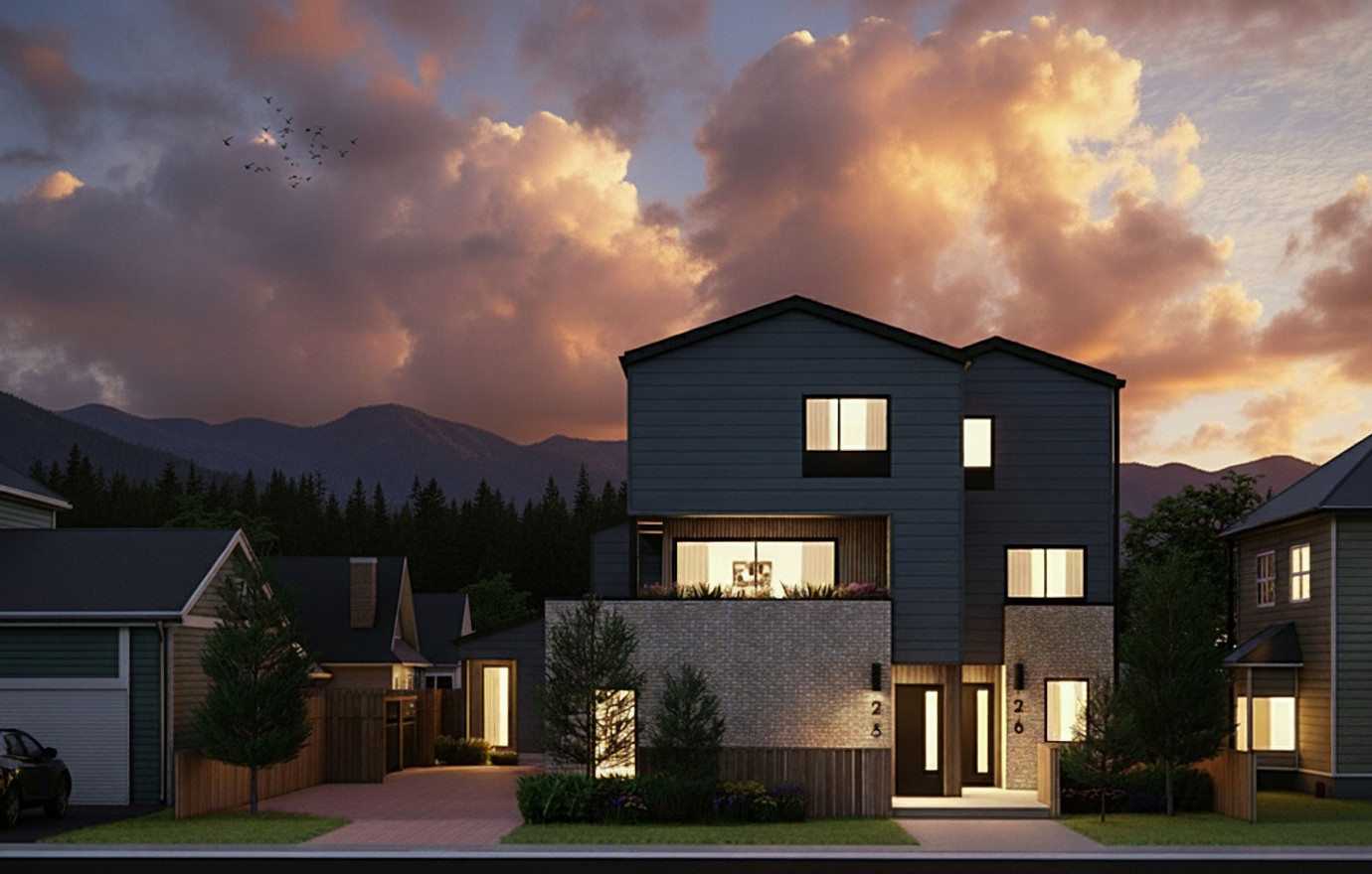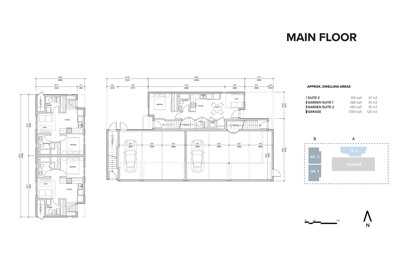 At-grade suites enable residents to age in place. The number of dwellings can be reduced to accommodate different lot sizes, whether that be corner lots or mid-block lots. All dwellings have been provided access to discreet outdoor amenity spaces, vehicular parking stalls, and bicycle storage areas. Permeable surfaced landscaping has been incorporated when possible, and vegetation and fences have been proposed to provide adequate screening. The dwelling floor plans have been designed to accommodate energy efficient appliances and fixtures and have been designed to comply with the BC Building Code and City of Maple Ridge regulations.
